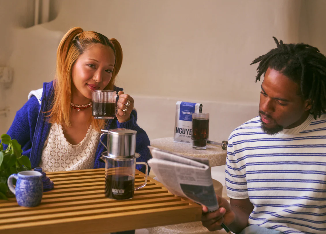 Custom designed Coffee Pitcher with hand-blown glass handle and beak shape spout.